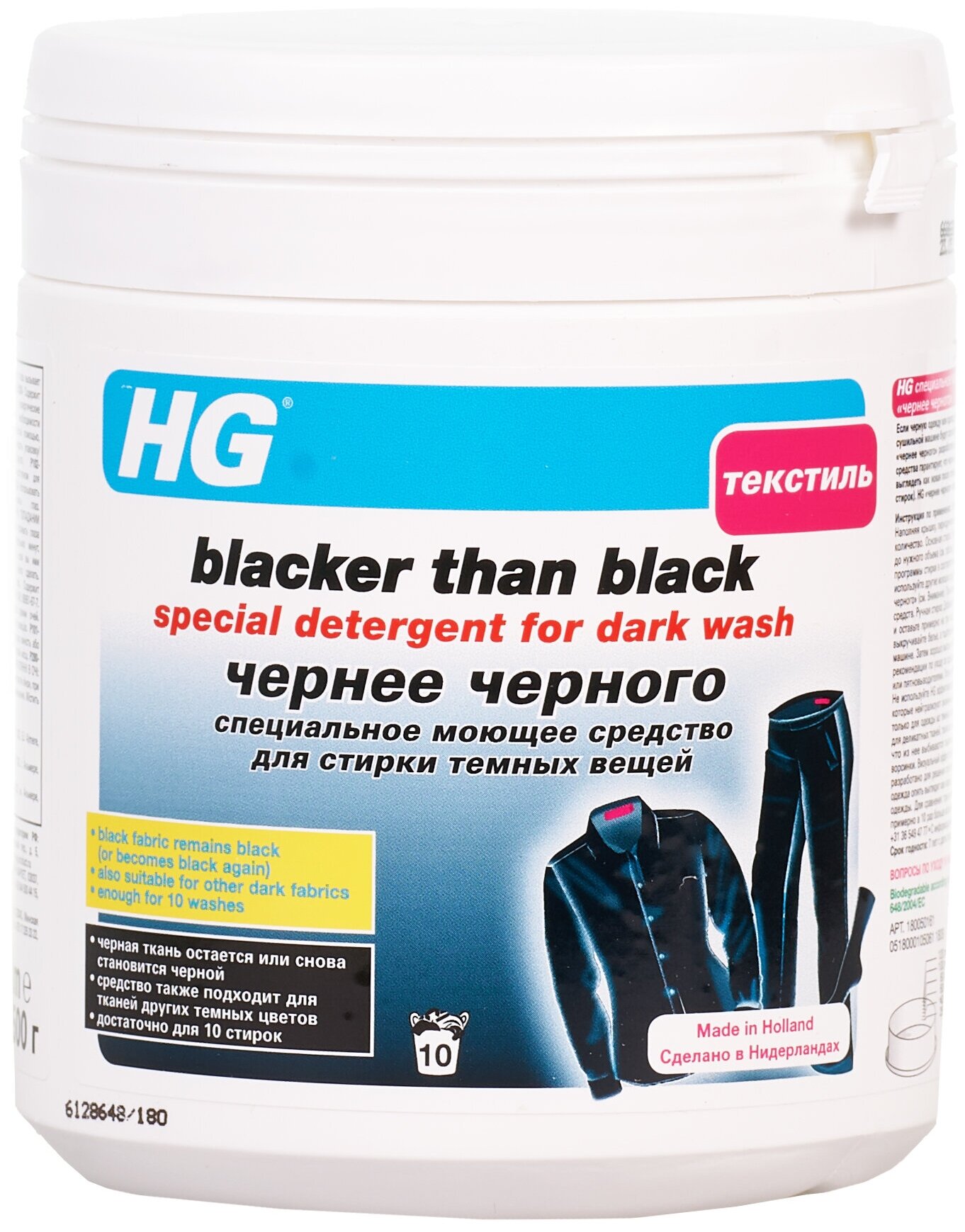 HG Специальное моющее средство для стирки темных вещей Чернее черного 500 гр в банке