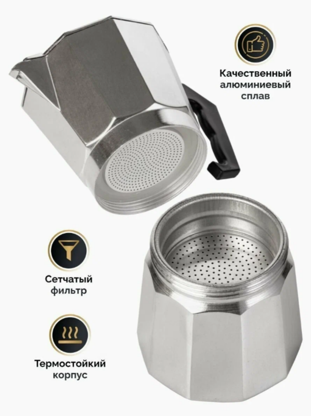 Качество отставляет желать лучшего. Мне пришла еще и бракованная, с погнутой воронкой, а вода не поднималась в верхний резервуар и кофе получалось 150мл. |