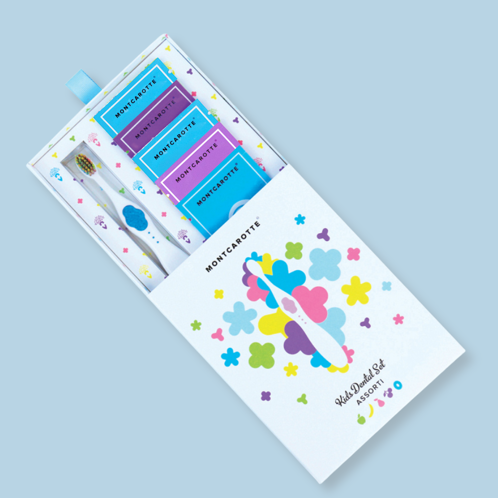 Подарочный набор Ассорти 0+ детская зубная щетка и детская зубная паста, Монткаротт, Италия, Южная Корея, MontCarotte