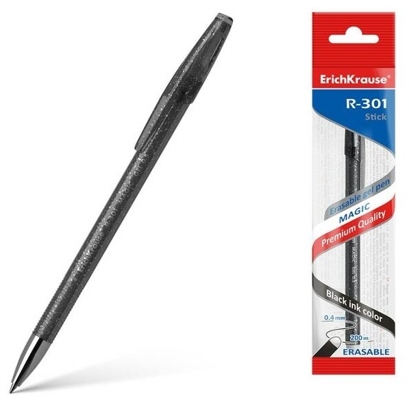 Ручка гелевая стираемая Erich Krause R-301 Magic Gel, узел 0.5 мм, чернила чёрные, длина письма 200 м, цена за 1 шт