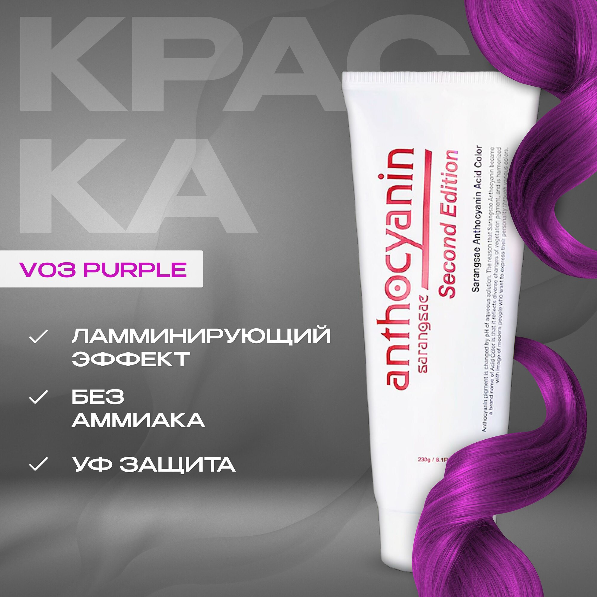 Anthocyanin Пурпурная краска для волос V03 Purple 230 мл профессиональная без аммиака ламинирующая