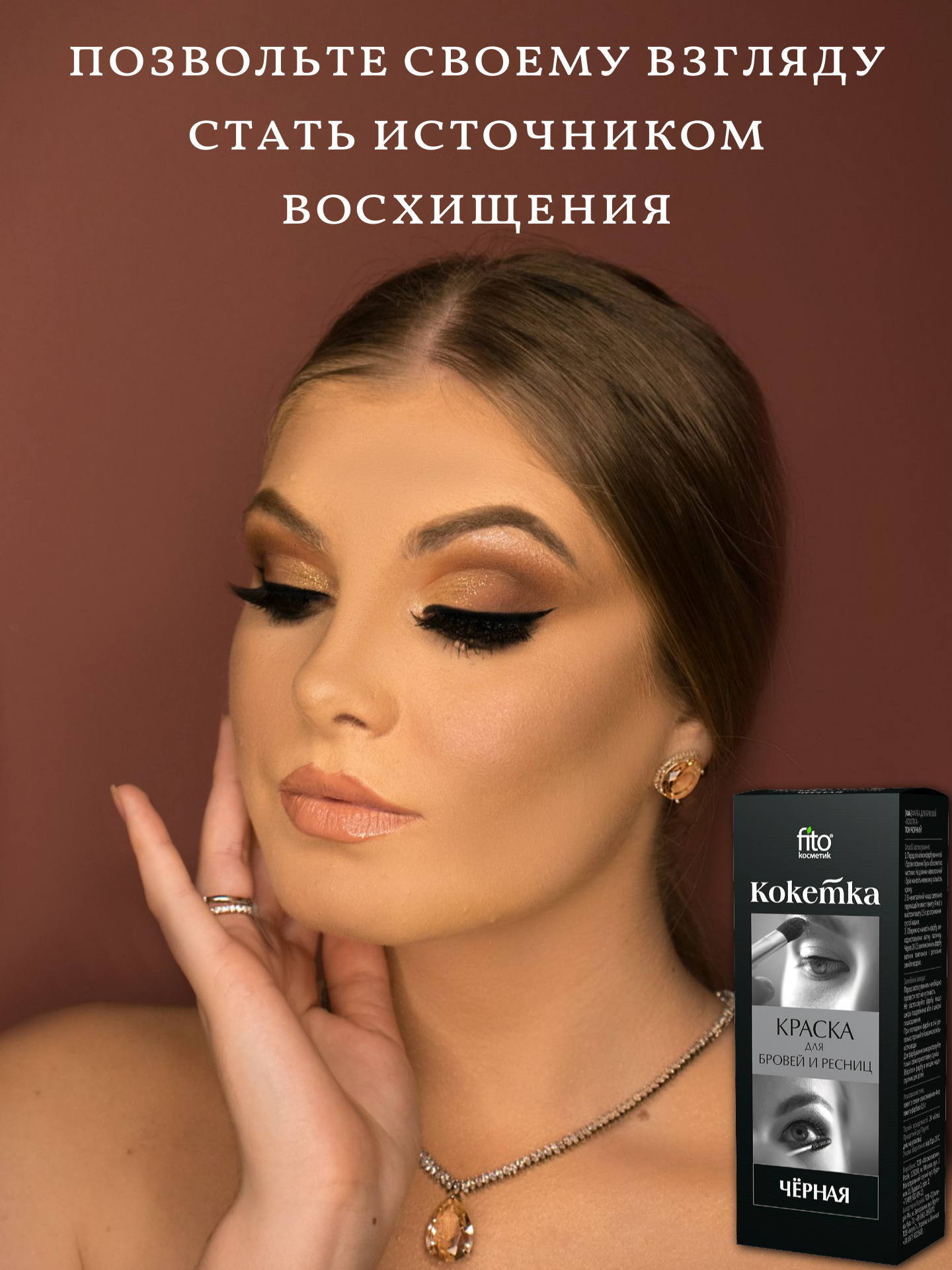 Фитокосметик Кокетка Краска для бровей и ресниц (краска 1.5 г + гель-окислитель 4 мл), тон чёрный