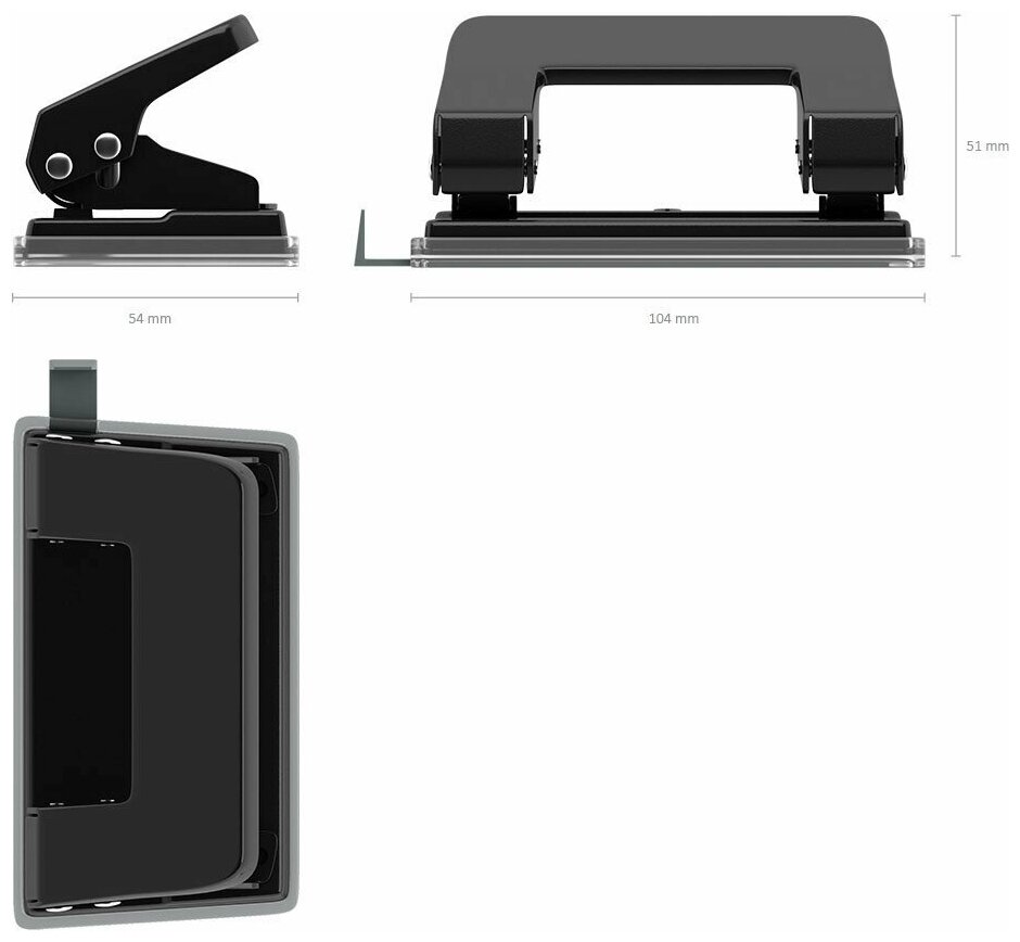 Дырокол Quadro, до 10 листов, диаметр прокола 6 мм, расстояние между проколами 80 мм, чёрный