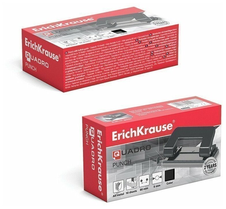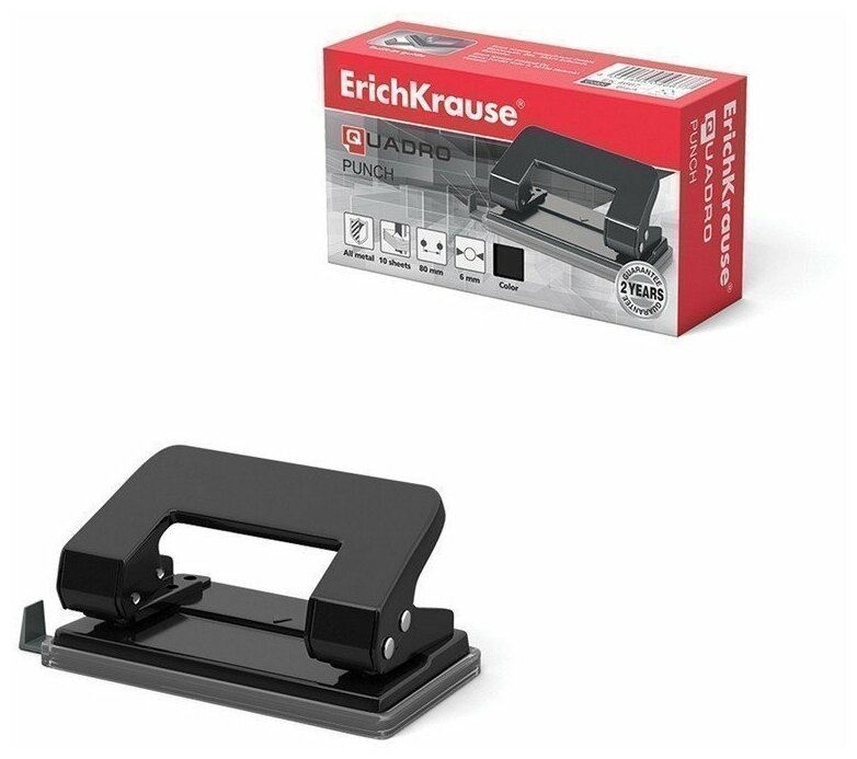 ErichKrause Дырокол ErichKrause Quadro, до 10 листов, диаметр прокола 6 мм, расстояние между проколами 80 мм, чёрный