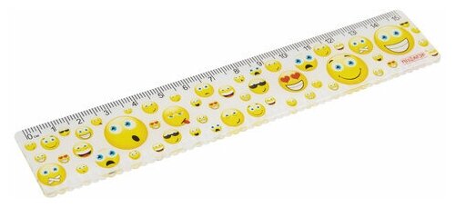 Линейка пластиковая 15 см, пифагор "Смайлики", цветная печать, с волнистым краем, европодвес, 210636 (цена за 1 ед.товара)
