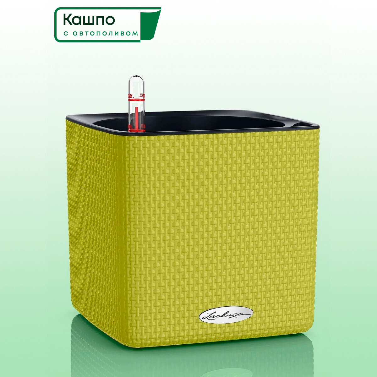 Кашпо с автополивом Lechuza CUBE Color 14, L14 W14 H13,5 см, зеленый лайм / горшок для цветов