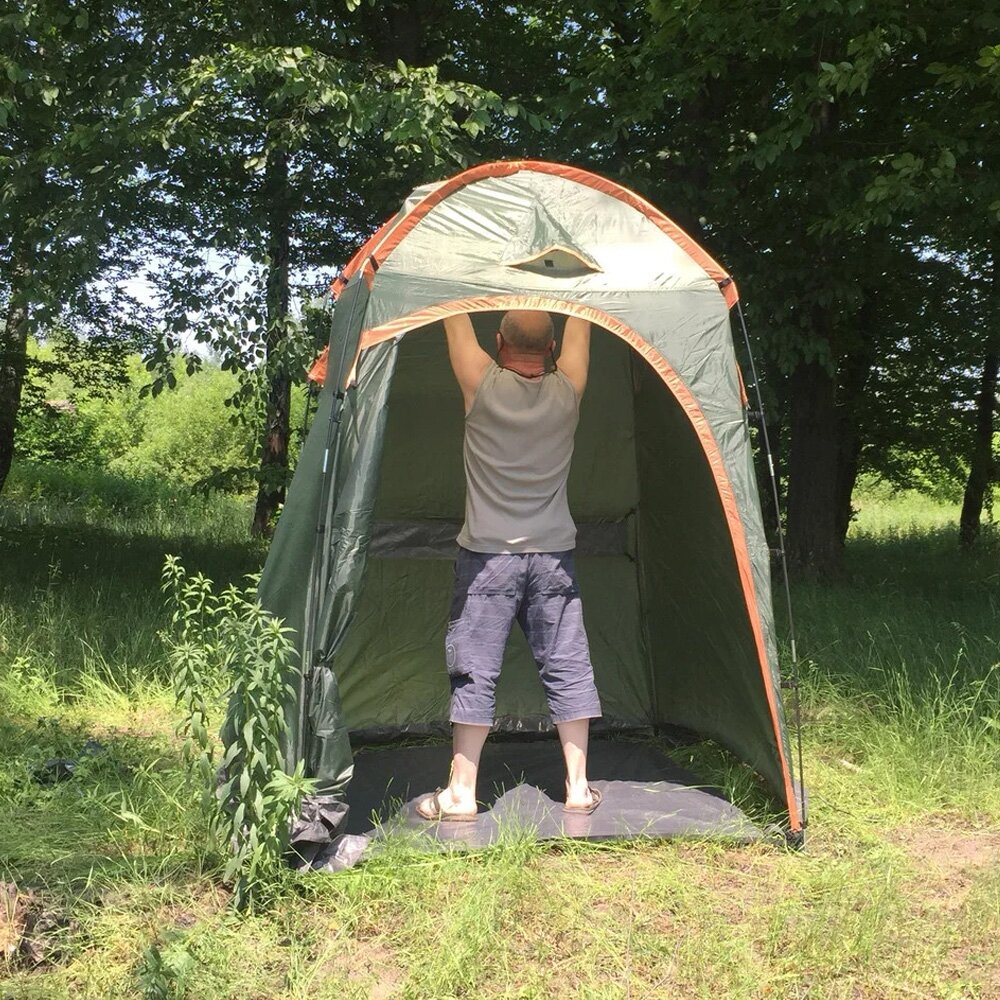 | Отзыв: | Ставил пока только один раз - в общем, всё вполне устраивает, для своего предназначения (душ, туалет и кабинка для переодевания) годится. Оттяжки лучше ставить даже если нет ветра - более надёжно стоит вся конструкция и молния на двери открывается без проблем. А вечером свет лучше ставить рядом и направлять на палатку, иначе со включенным внутри светом прям достаточно хорошо видно что там происходит |