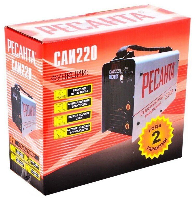 Сварочный аппарат инверторный САИ-220ПН РЕСАНТА для работы при пониженном напряжения от 140В / рабочий ток 10-220А