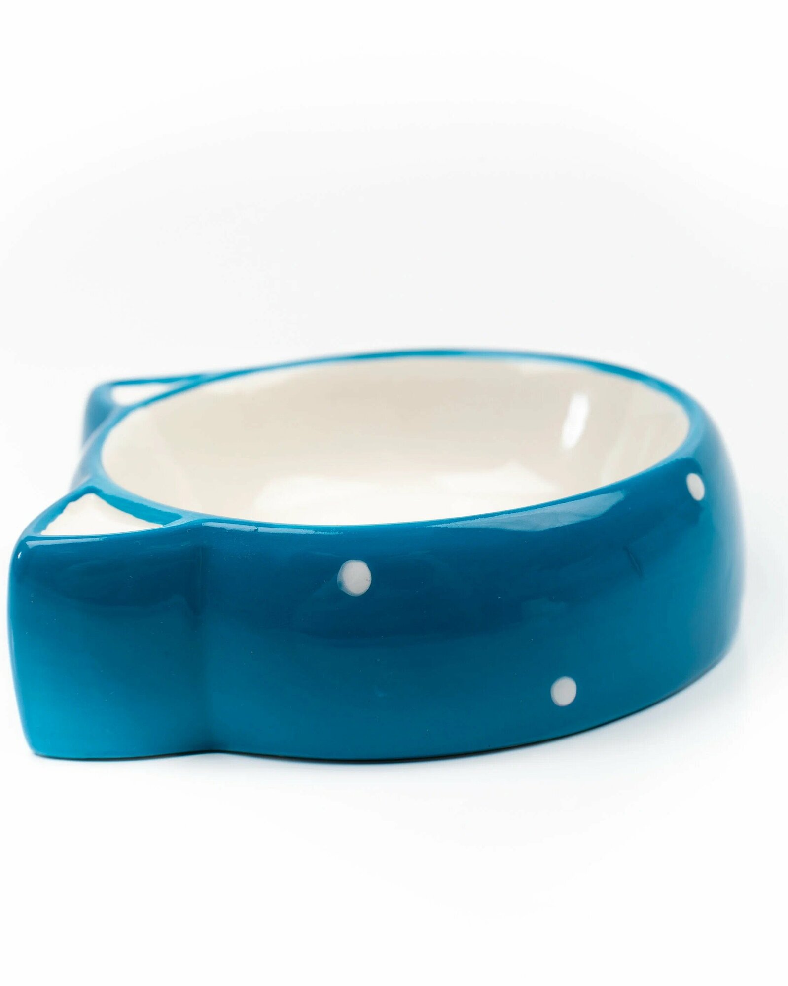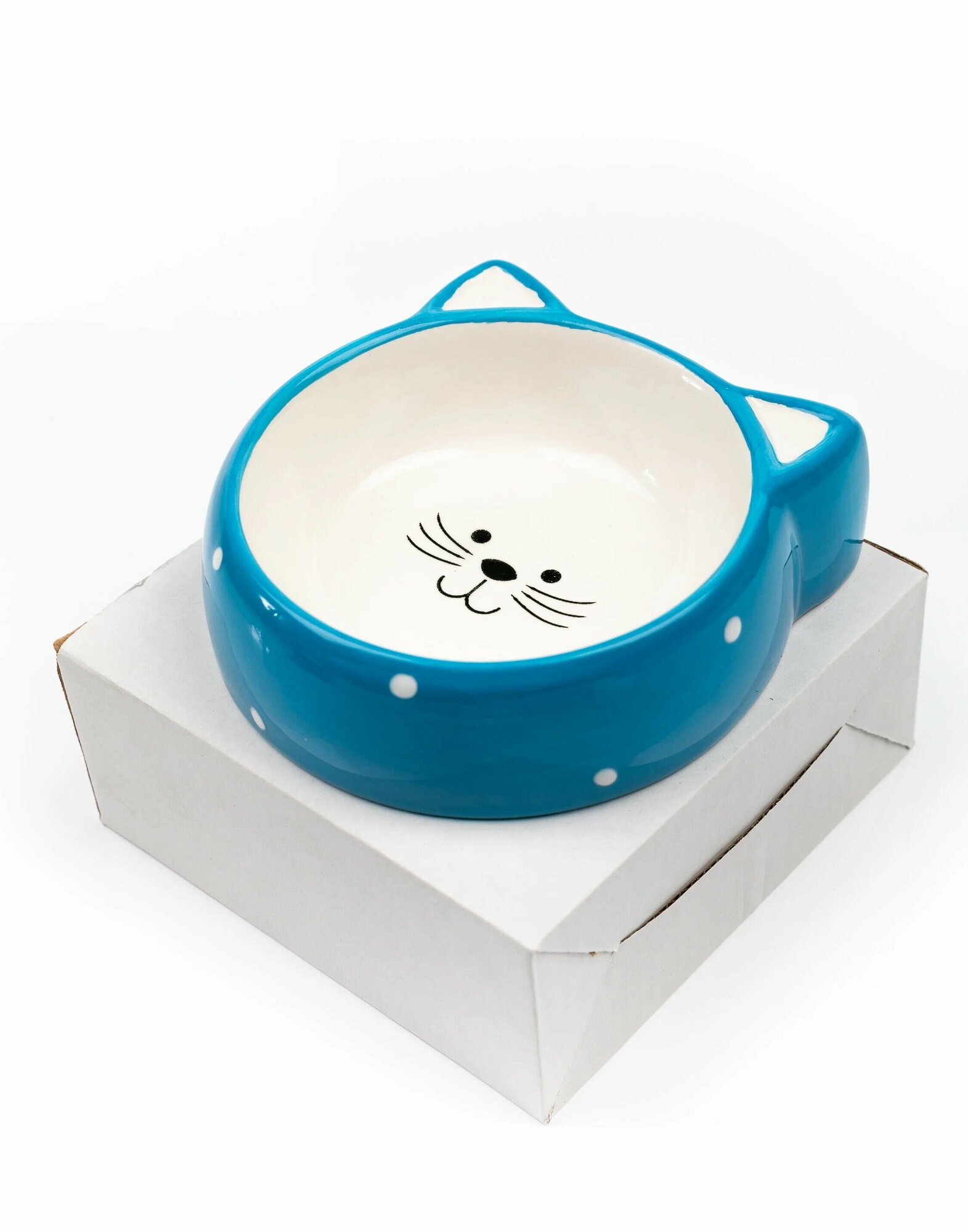 КерамикАрт миска керамическая для кошек "Мордочка кошки", 250 мл, голубая в горошек