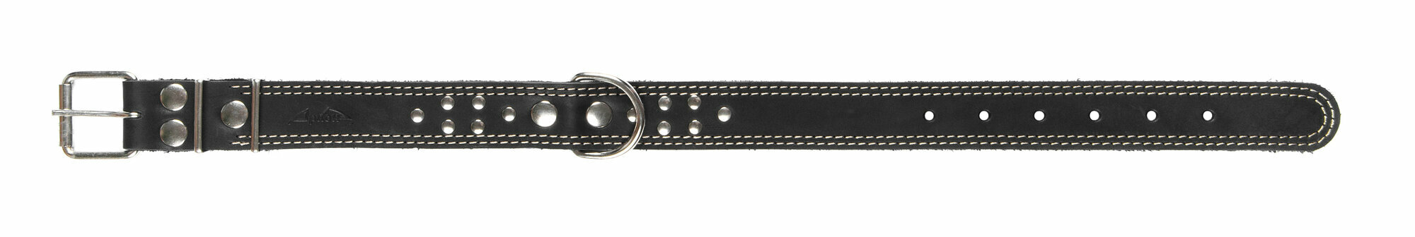 Ошейник аркон кожаный для собак однослойный, украшения, двойная строчка, черный (46-60 см/35 мм)