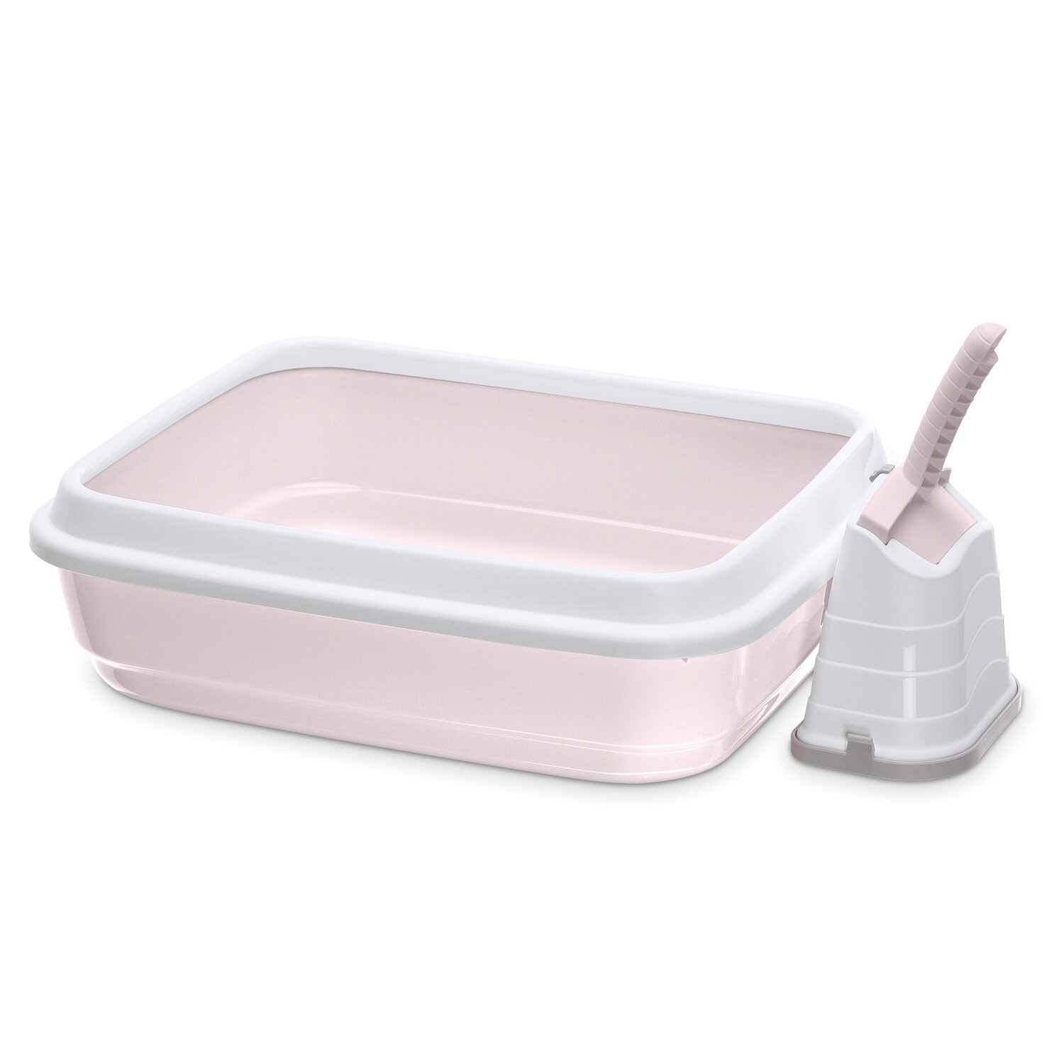 Туалет для кошек с бортом и совком DUO, светло-розовый, 59х40х28 см