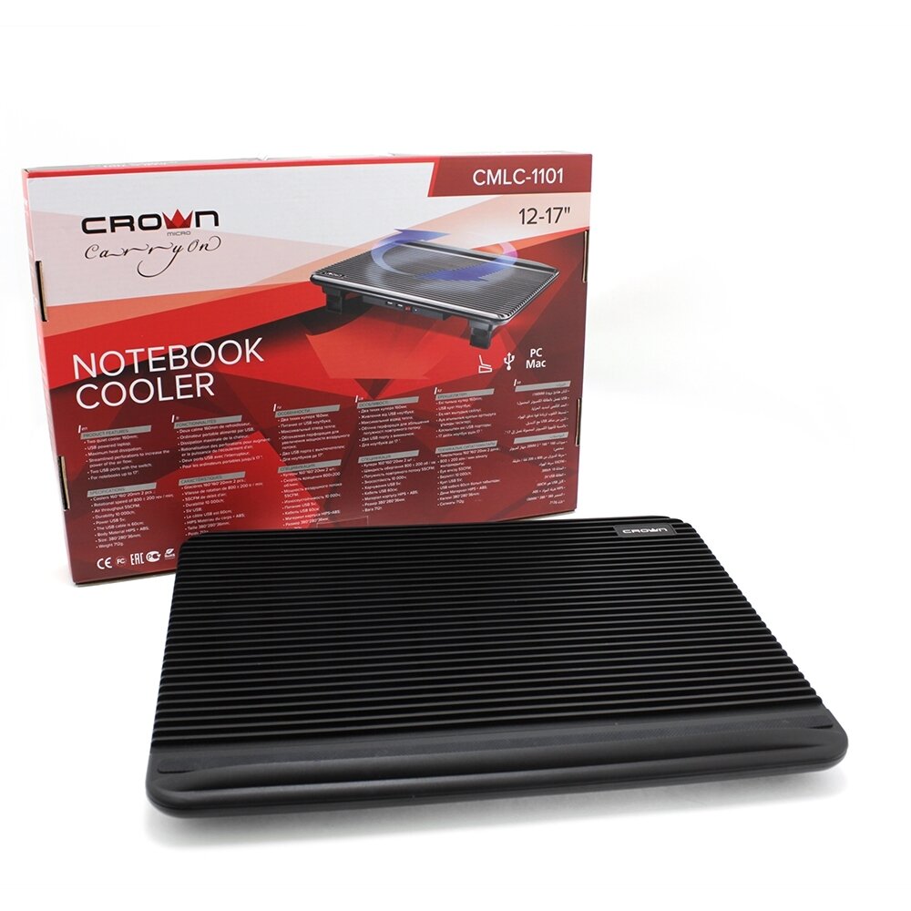 Подставка для ноутбука Crown CMLC-1101 black 17", кулеры: silent D110mm*2, хаб на 2 порта USB .