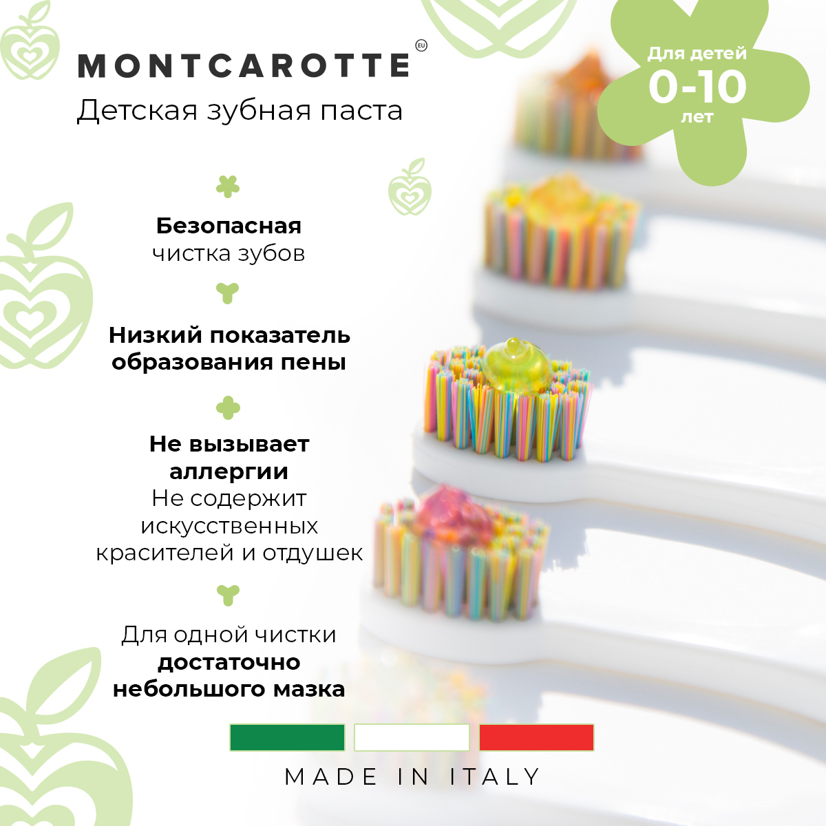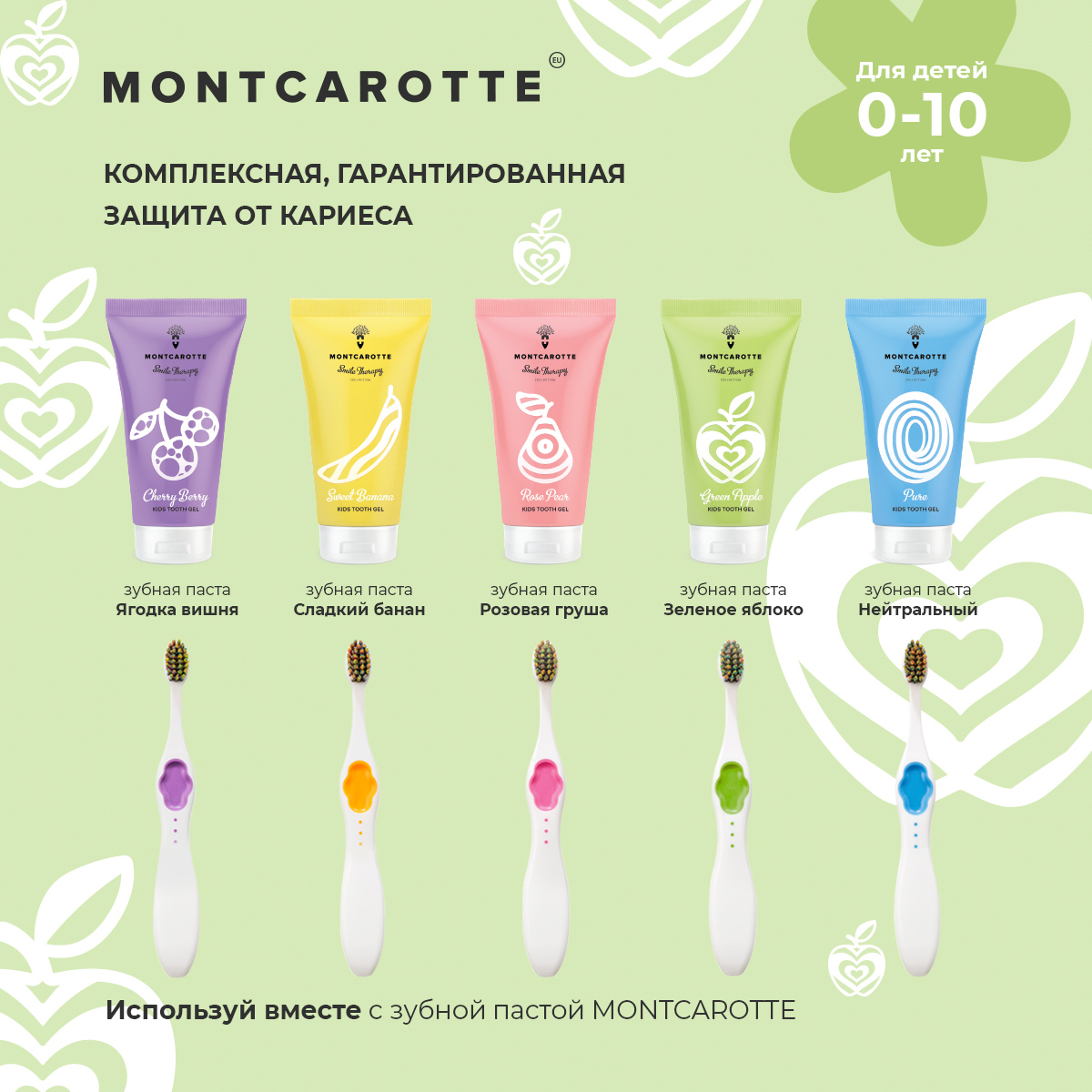 Зубной гель MontCarotte Зеленое Яблоко (с 3 лет), 30 мл