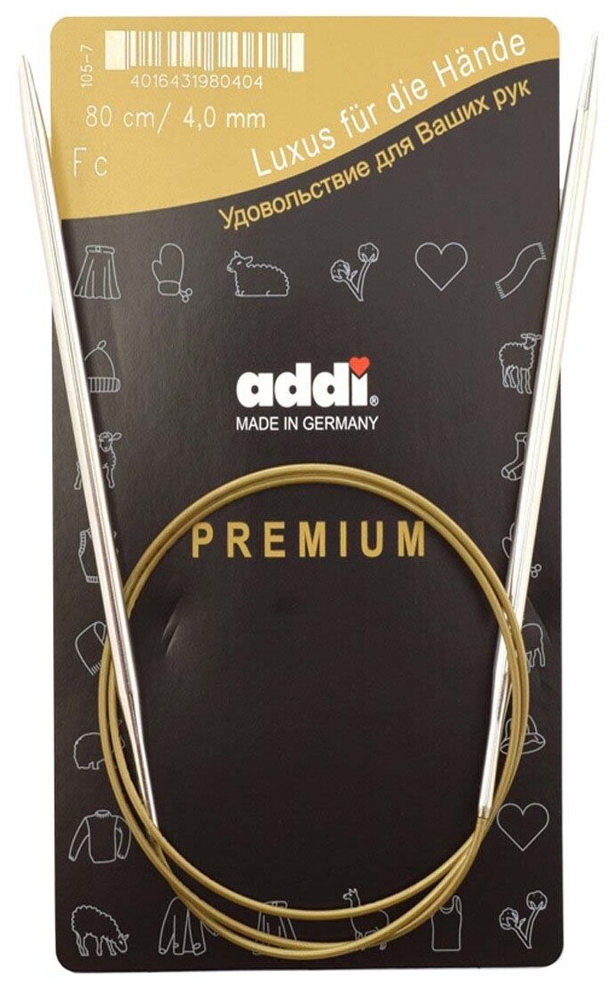 Купить Addi 105-7 Спицы круговые супергладкие из никелированной латуни 80см 4.0