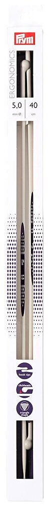 Спицы для вязания PRYM прямые, Ergonomics, 40 см, 5 мм, high-tech полимер, 2 шт (PR.190407)