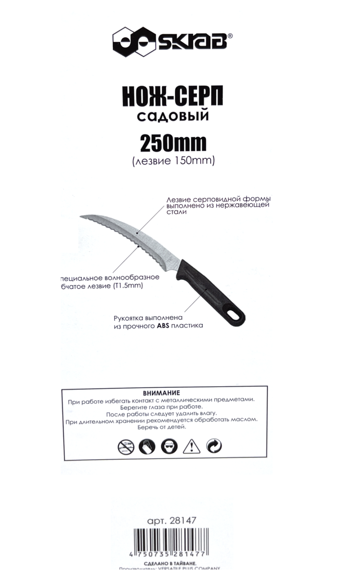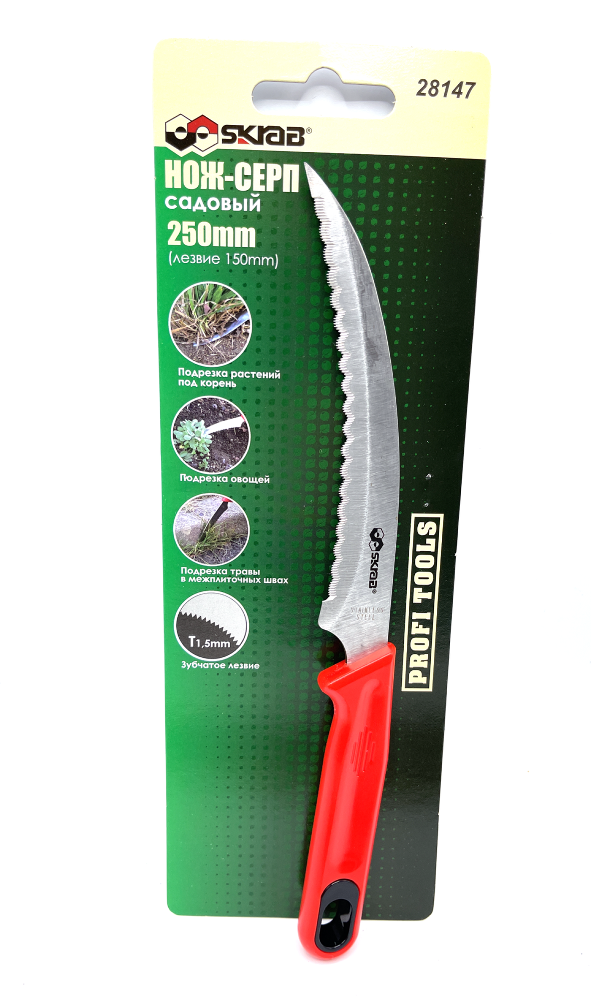 Нож - серп садовый мини с зубчатым лезвием, 250 мм, Skrab 28147, нержавеющая сталь
