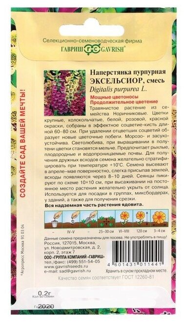 Семена цветов Наперстянка "Эксельсиор", пурпурная, 0,05 г интересное: