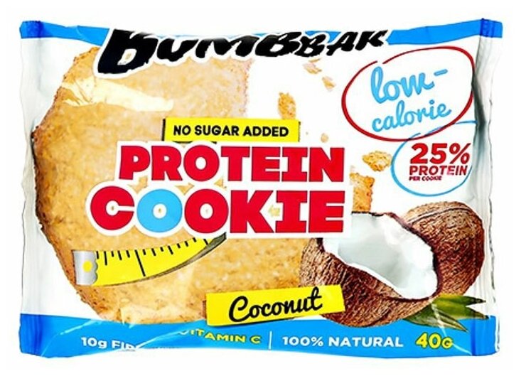 Низкокалорийное протеиновое печенье Bombbar Protein Cookie без сахара низкокалорийное "Кокос", 12шт х 40г