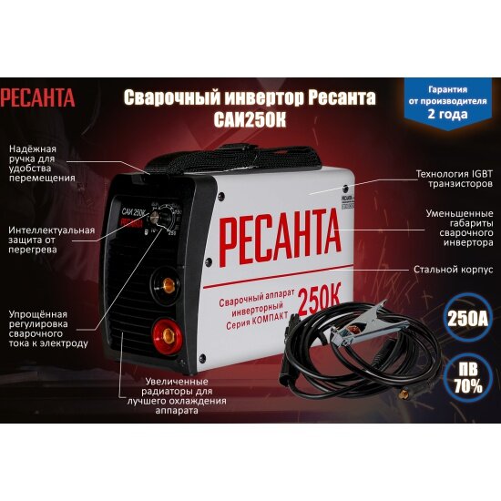 Сварочный инверторный аппарат РЕСАНТА САИ-250К серии компакт