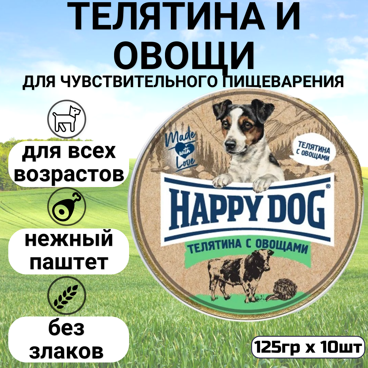 HAPPY DOG NATUR LINE для взрослых собак маленьких пород паштет с телятиной и овощами (125 гр х 10 шт)