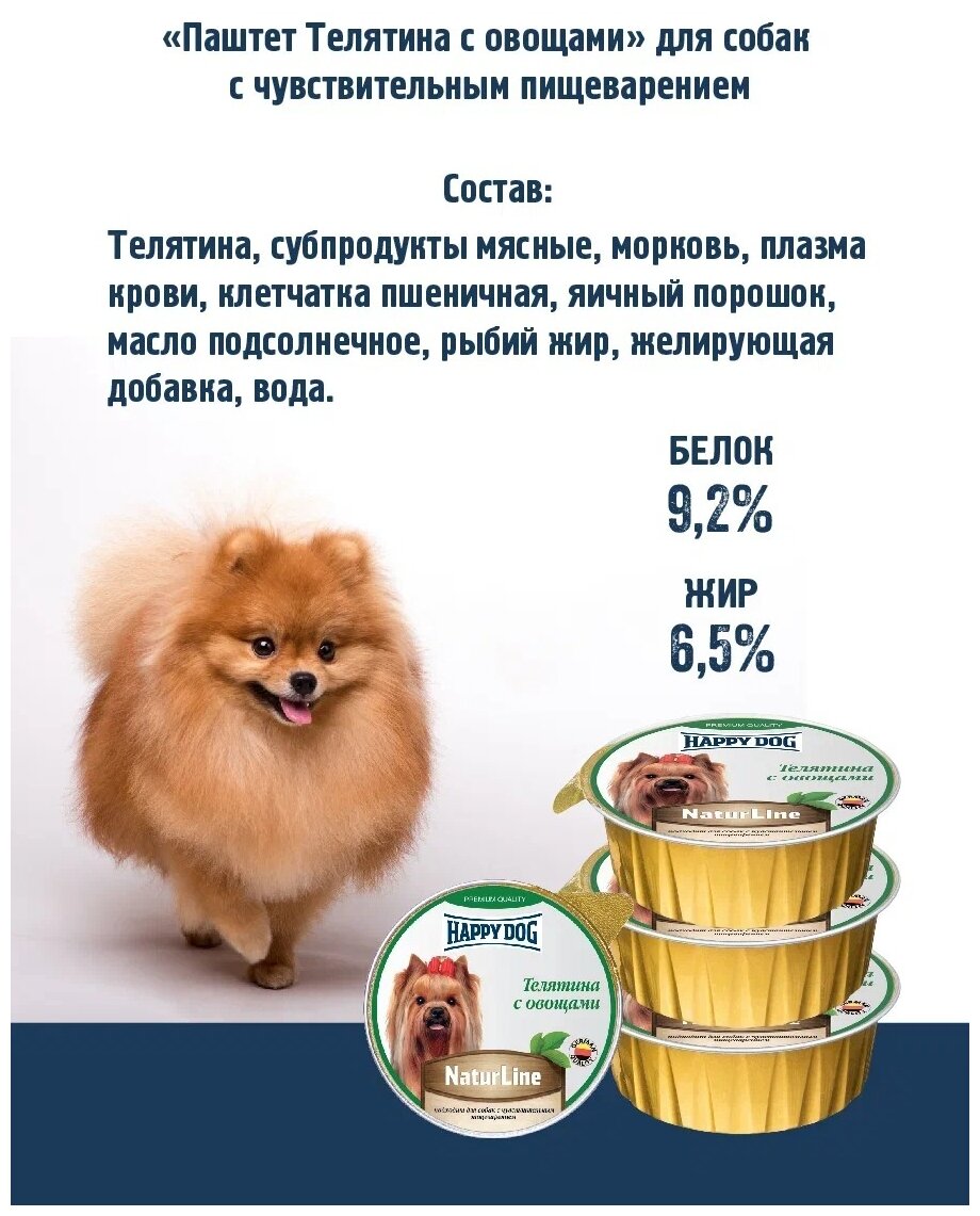 Влажный корм для собак мелких пород с Телятиной и овощами Хэппи Дог Happy Dog Natur Line паштет, 125 г х 10 шт.