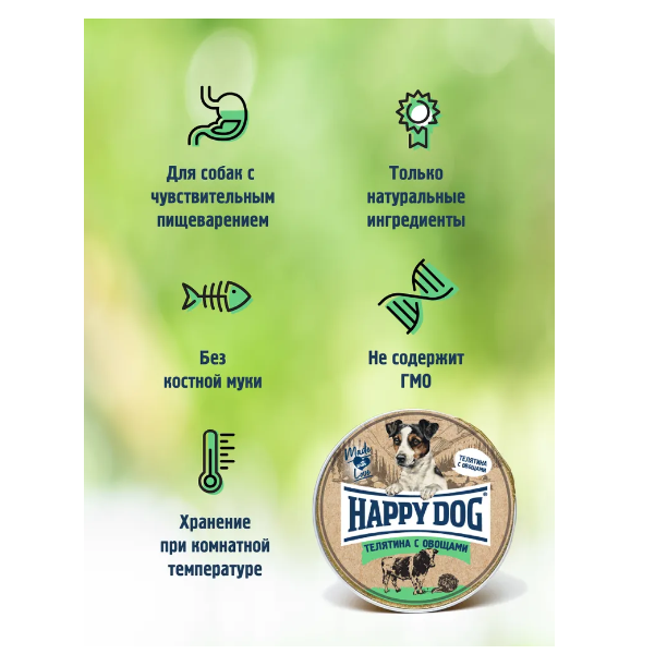 72250 Хэппи Дог Natur Line кон.д/собак Телятина с овощами паштет 125 гр