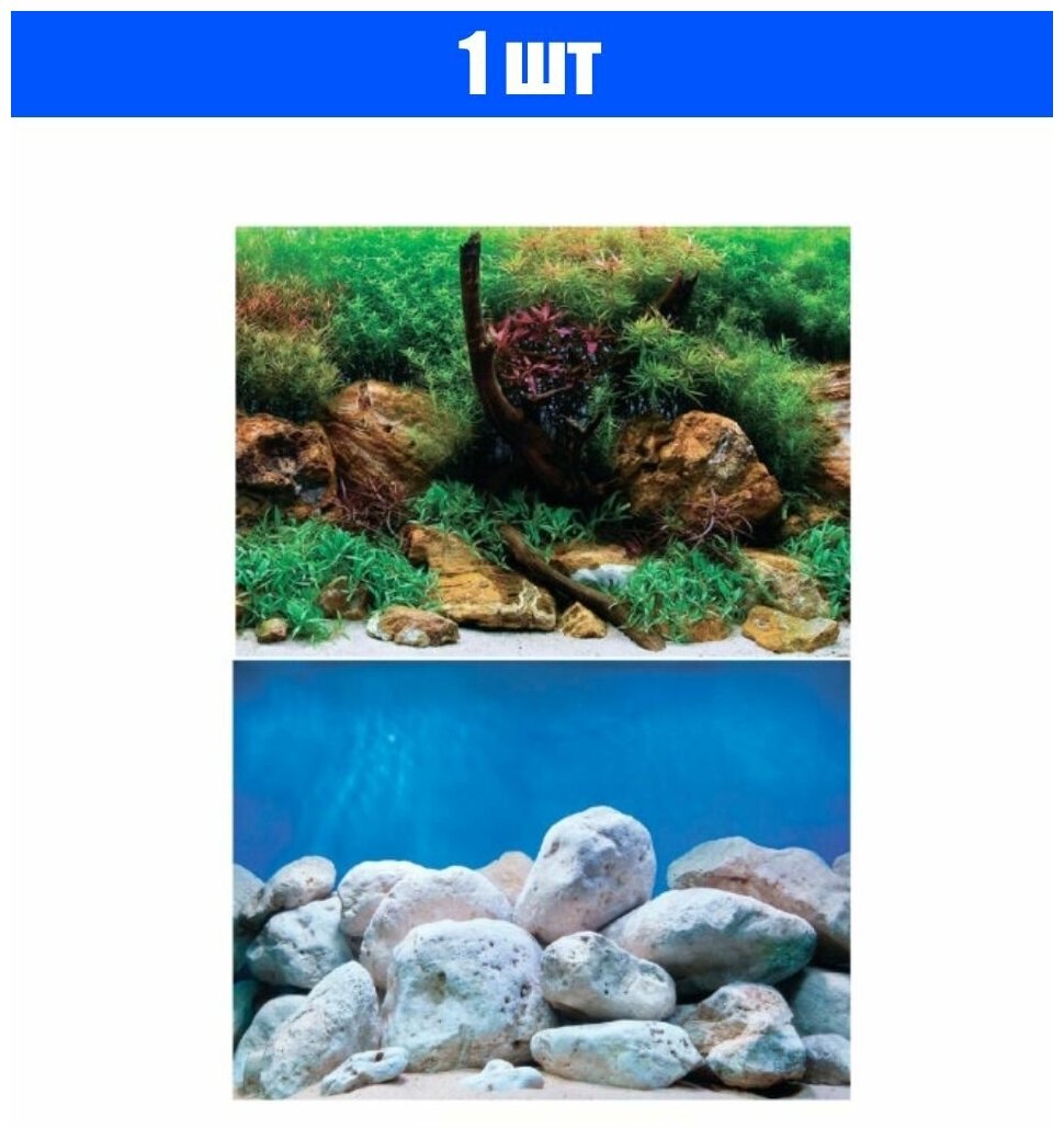 Фон д/аквариума двухстор. 30*62см Водный сад/Яркие камни 1/1 - 1 шт!