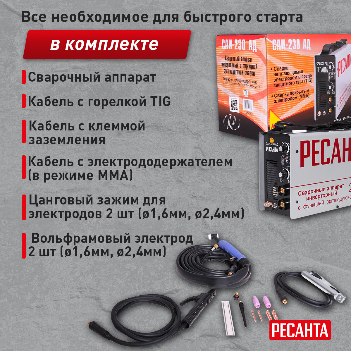 Сварочный аппарат инверторного типа РЕСАНТА САИ-230 АД, TIG, MMA