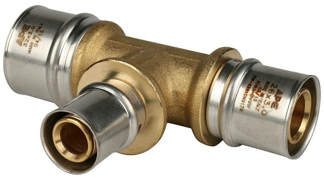 Тройник переходной 32х20х26 для металлопластиковых труб прессовой ФУМ лента 10м