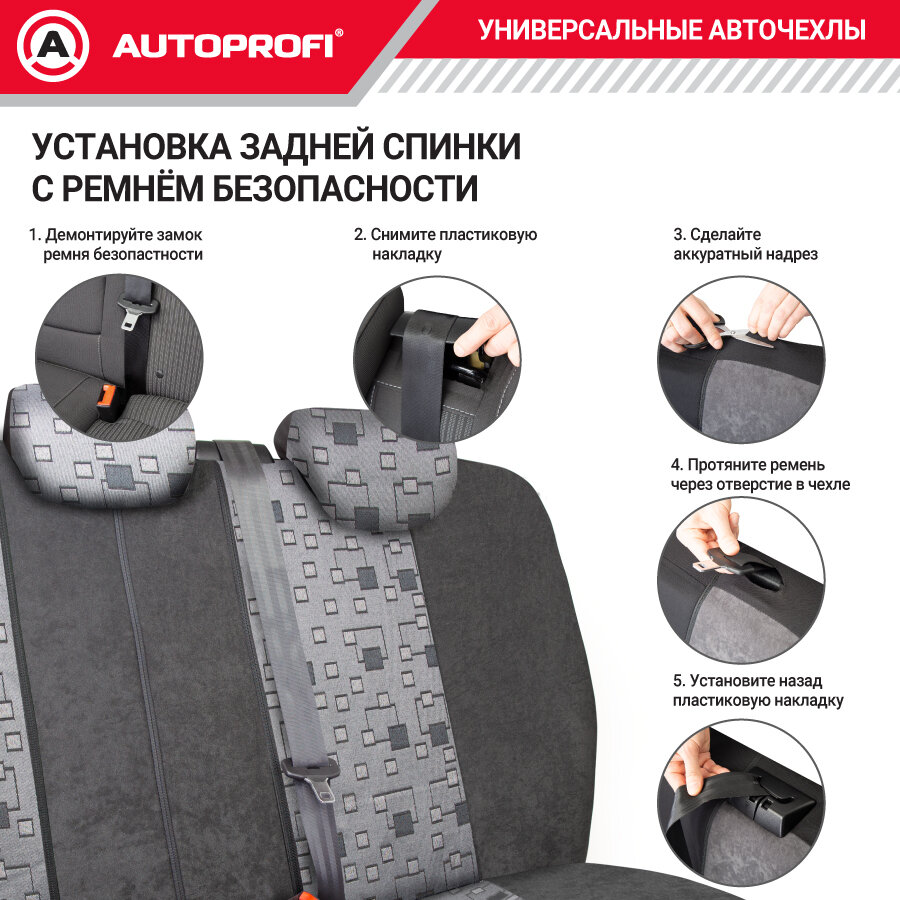 Авточехлы универсальные AUTOPROFI SGN-1505 BK/GY SIGNATURE, велюр, 5 мм поролон, 3D крой, 15 пред., черный/серый