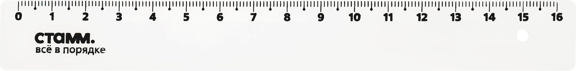 Линейка пластиковая 16 см, СТАММ, прозрачная, ЛН03