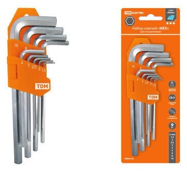 Купить Набор ключей имбусовых TDM HEX (шестигранники), 9 штук 1.5-10мм, короткие, (держатель в блистере), CR-V сталь "Алмаз"