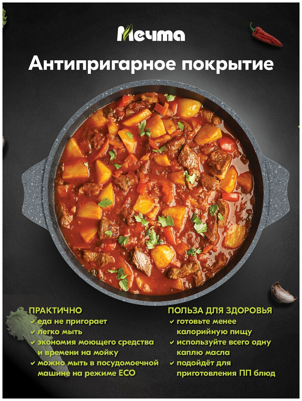 СохранитьКастрюля-жаровня Мечта Гранит, 2.4 л, диаметр 24 см интересное: