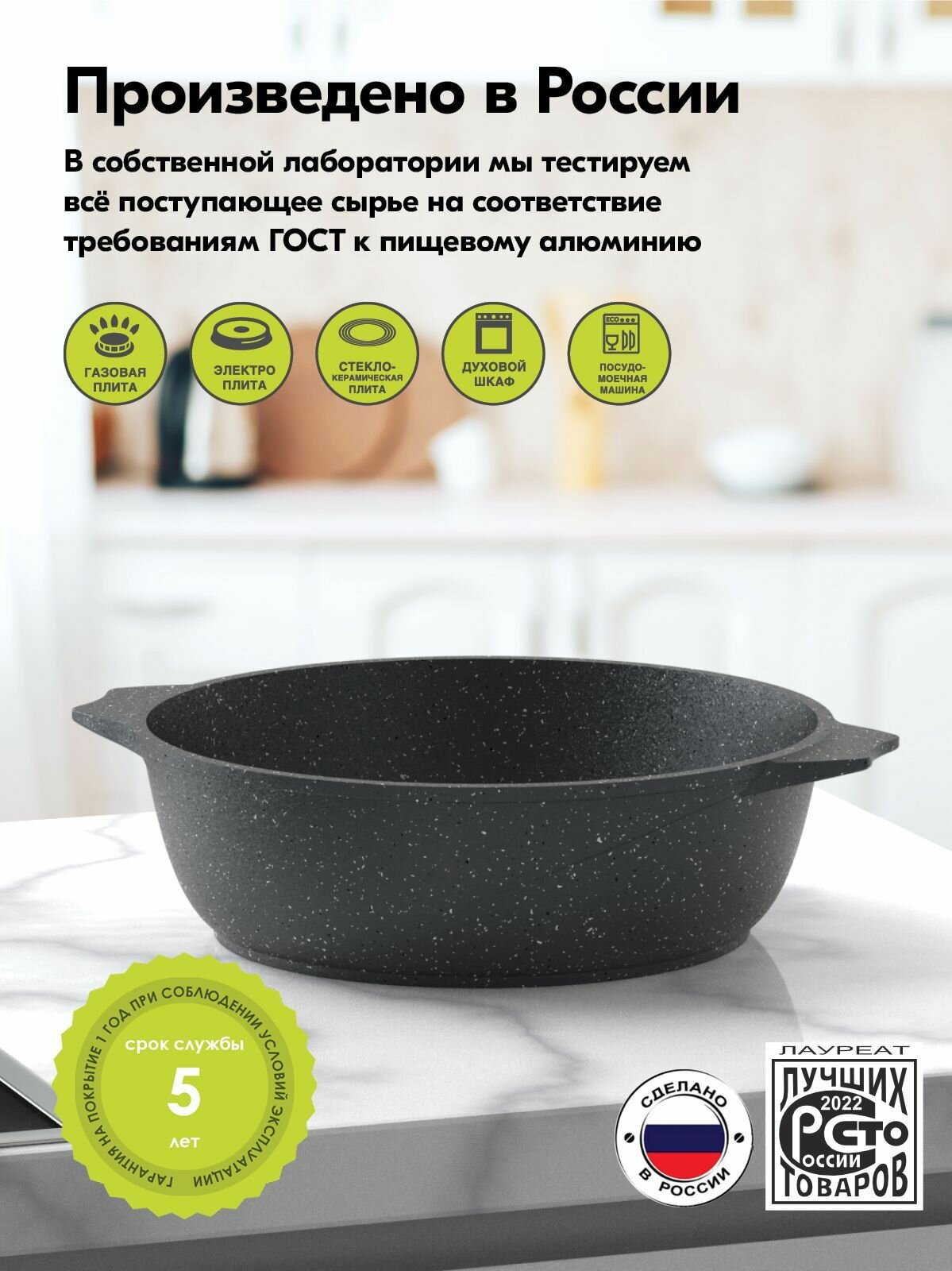 Жаровня "Мечта" 3л Гранит с антипригарным покрытием с крышкой, можно мыть в посудомоечной машине