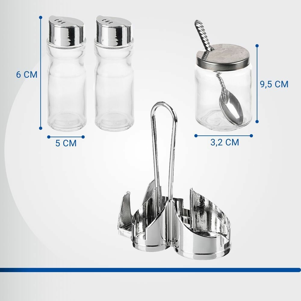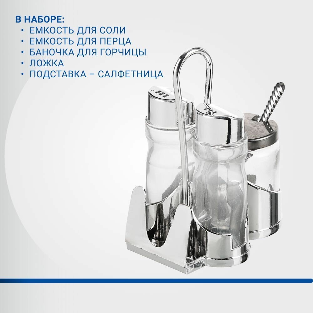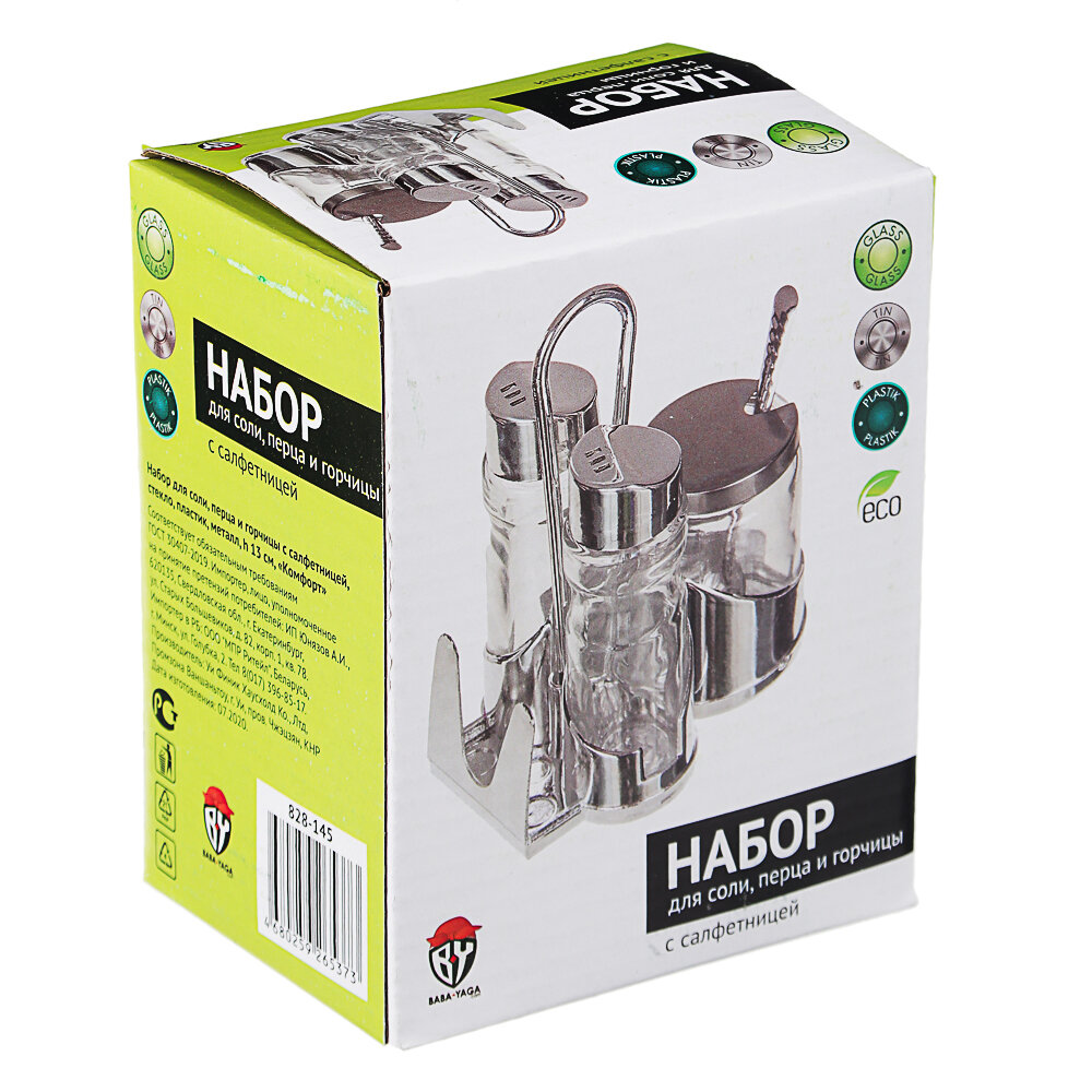 Набор для соли, перца, горчицы с салфетницей 13см "Комфорт" (стекло/металл/пластик) интересное: