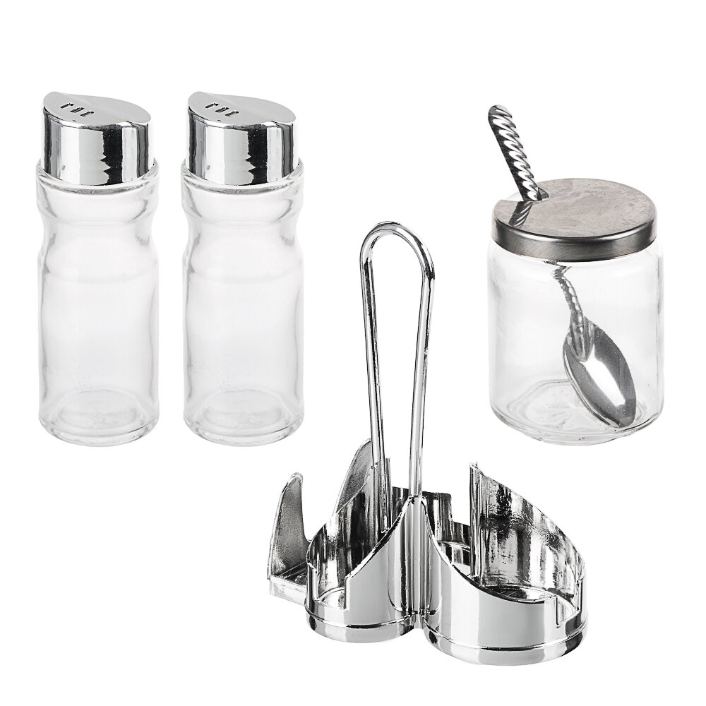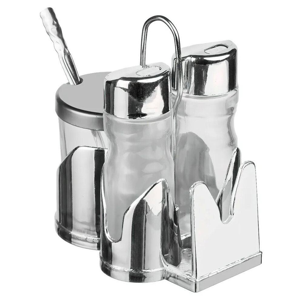 Купить Набор для соли, перца, горчицы с салфетницей 13см "Комфорт" (стекло/металл/пластик)