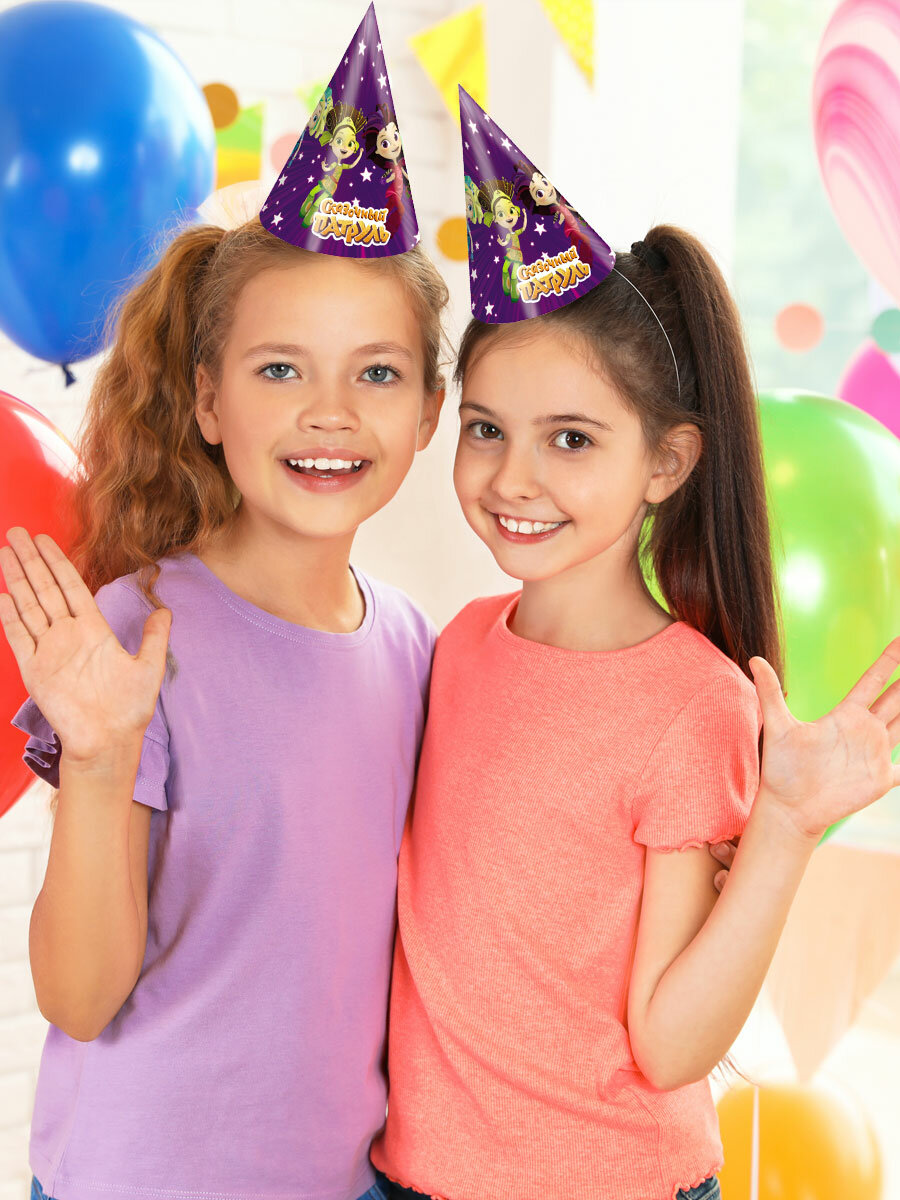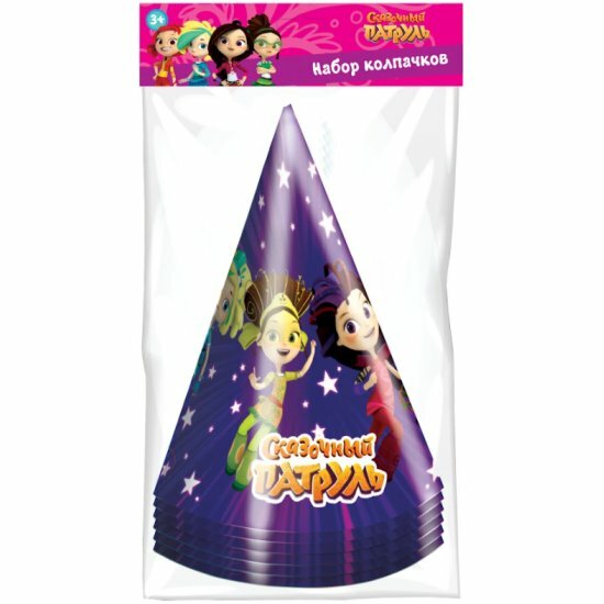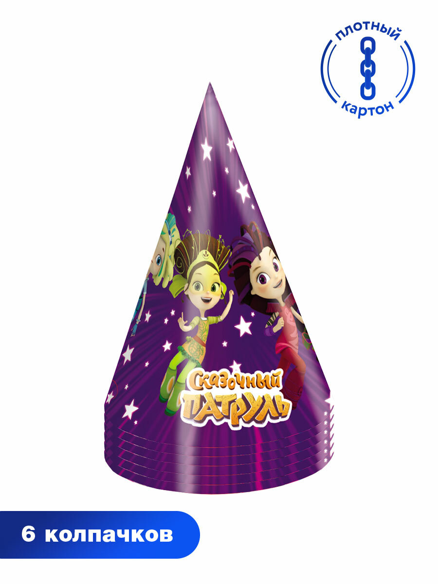 Праздничные колпаки картонные Riota Сказочный Патруль, фиолетовый, 6 шт.