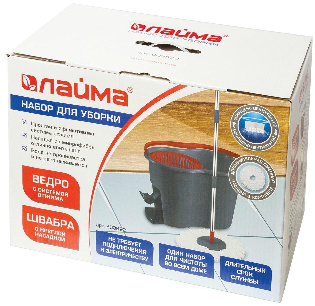 Лайма Набор для уборки лайма, ведро 7 л с отжимом и педалью, швабра с круглой насадкой (2 шт., кольцо), 603622
