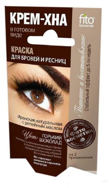 Fitoкосметик Стойкая крем-краска для бровей и ресниц Fito color, цвет горький шоколад (на 2 применения), 2х2 мл