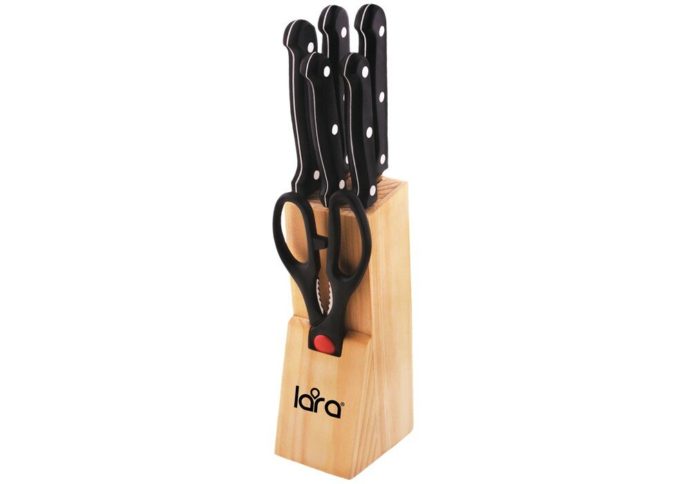 Набор ножей Lara 7 предметов: деревянная подставка + 5 ножей + ножницы LR05-53