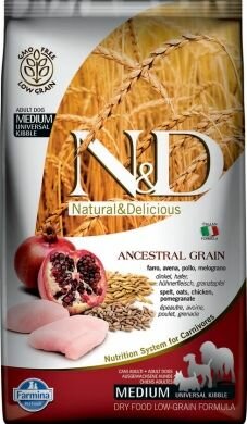 Сухой низкозерновой корм с курицей и гранатом для собак средних и крупных пород Adult Medium&Maxi, Farmina N&D Ancestral Grain, 15 кг