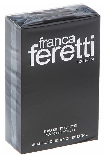 Ниже Вы можете прочитать отзывы на Franca Feretti Мужской For Man Black Туалетная вода (edt) 100мл, ознакомится с подробными характеристиками, посмотреть интересные обзоры и фотографии на Franca Feretti Мужской For Man Black Туалетная вода (edt) 100мл.