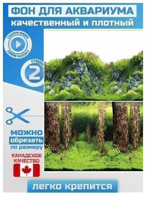 Фон для аквариума двухсторонний 30*60см Затопленный лес/Камни с растениями интересное: