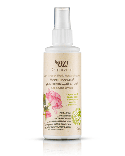 Несмываемый увлажняющий спрей для волос и тела (с цветочной водой розы и эфирным маслом апельсина) 110 мл, OZ! OrganicZone интересное: