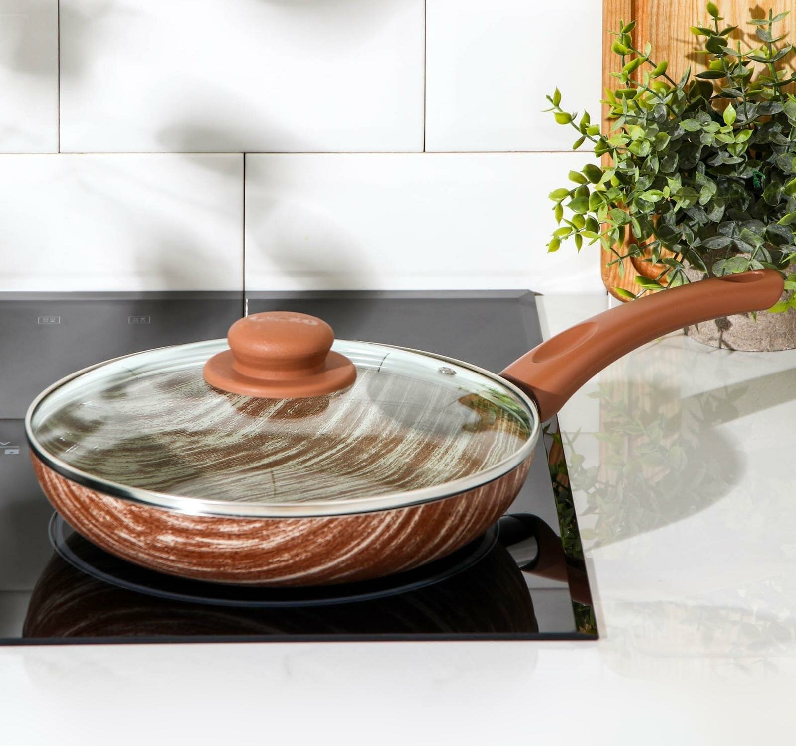 Сковорода глубокая Kantry, d=28 см, стеклянная крышка, пластиковая ручка, антипригарное покрытие, цвет коричневый