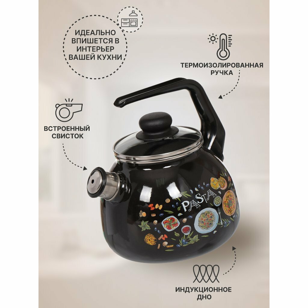 Стальэмаль Чайник Pasta, 3 л, индукция, цвет чёрный