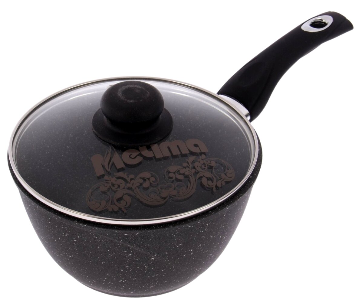 Ковш алюм, антиприг, 1.7 л, крыш стекло, бакелит ручка, Мечта, Гранит black, 82802