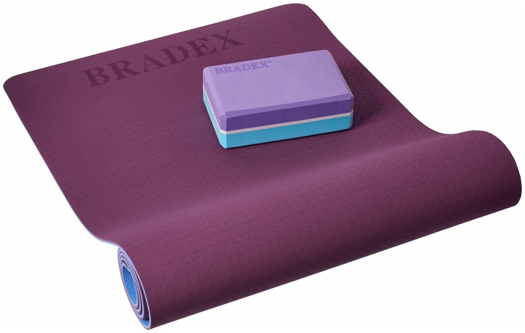 Коврик для йоги и фитнеса, Bradex (товары для спорта и отдыха, 183 х 61 х 0,6, ТПЭ, двухслойный, фиолетовый, SF 0402)