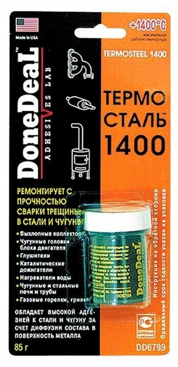 Термосталь- термостойкий (до 1400 С) сверхпрочный ремонтный герметик Done Deal DD6799