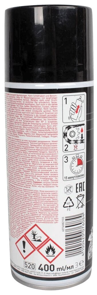 LIQUI MOLY 7608 Спрей для приводной цепи мотоциклов Motorrad Kettenspray Enduro 400мл 1шт